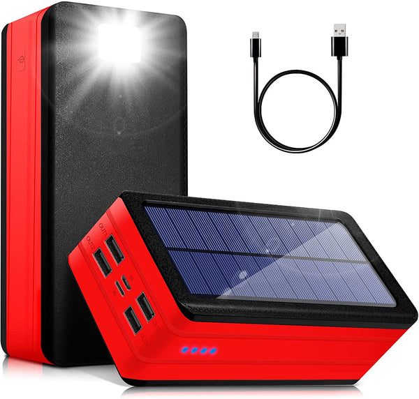 Super Power Solar Power Bank 50000mAh, Portable Charger with Flashlight, 4 Outputs, 2 Inputs Ports, wireless charge, Waterproof for Camping/Hiking/Trips